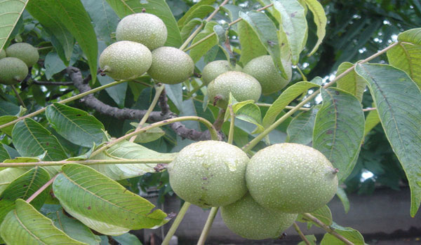 大泡核桃(又名漾濞核桃、棉核桃、茶核桃、麻子),原产漾濞县,现广泛分布于大理、丽江、怒江、保山、临沧、楚雄、红河、昆明、曲靖、景东、昌宁等州(市),以及贵州、四川等省份的部分地区,为云南和贵州早期无性优良品种,已有300多年栽培历史。1979年在全国科技协作会上被评为全国优良品种之一。2004年漾濞大泡核桃通过原产地标记注册论证,漾濞大泡核桃干果已通过有机食品认证。