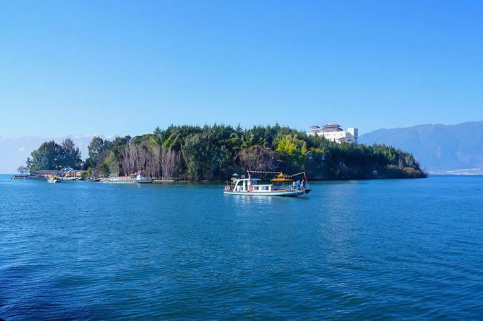 岛上风光旖旎,海天一色,风月无边;千年古榕枝繁叶茂,幽穴古洞盘曲交错;岛屿四围水清沙白,苍洱百里壮景尽收眼底,可谓"山同人朗,水与情长"。上得岛来,游人便可赏“十景”之美...