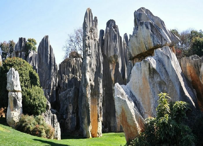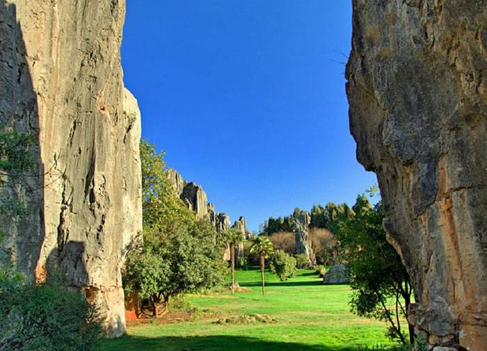 神奇的喀斯特地形石林位于云南省昆明石林彝族自治县境内,石林公园旧时一直被称为李子菁石林,距昆明86公里,包括大石林、小石林、外石林,无数的石径、石廊、石门、石洞、石桥,贯串其间,将它连成一个有机的整体。以往人们口中所说的云南石林、路南石林指的就是这一带。在路南石林中,大石林是开发得最早的。