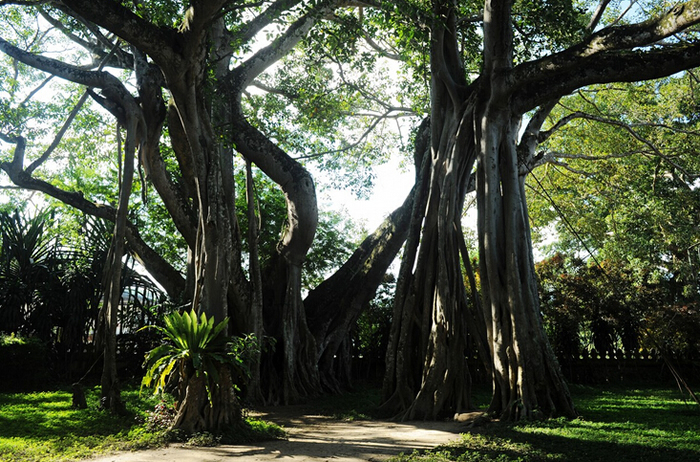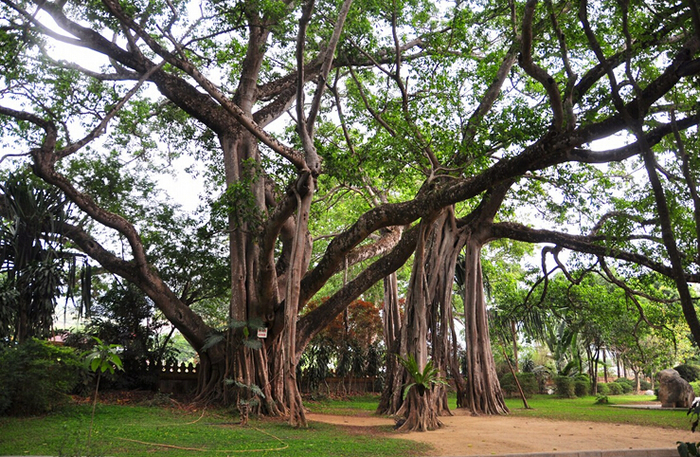独树成林位于打洛镇边境贸易区内的曼掌寨子旁,距离打洛镇政府以南3.5公里,靠近中缅边境的地方。这是一棵古榕树,有900多年的树龄,共有31个根立于地面,树高70多米,树幅面积120平方米,枝叶既像一道篱笆,又像一道绿色的屏障,成为热带雨林中的一大奇观,打破了“单丝不成线,独树不成林”的俗语。