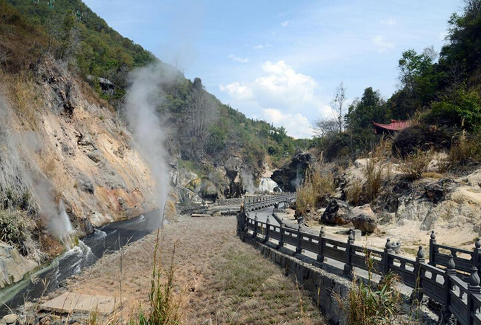 腾冲是中国三大地热区之一,地热温度之高,蒸气之大盛,水热活动之强烈,为国内罕见。境内有沸泉、气泉、喷泉、温泉群878处,每一泉群又有若干热水热气露,其中,位于全县地热区高温中心的热海,其景观、水温、涌水量为全县之冠,有“一泓热海”之美誉,为国家级地热火山风景名胜区中最重要的景区之一。