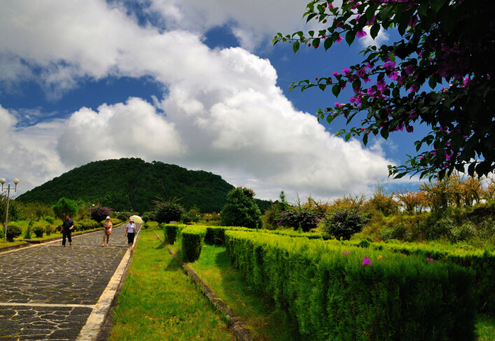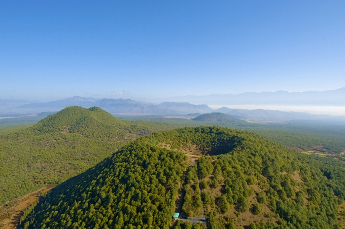 云南腾冲的火山国家地质公园位于云南省西南部的腾冲和梁河县境内。地质公园以古火山地质遗迹及相伴生的地热泉为特色。公园内有97座火山体。 其中火山形态保存完整有火山口、火山锥的有25座,火山锥类型多样。公园内有数级熔岩台地,主要有环火山口熔岩台地、环火山锥熔岩台地和裂隙溢出的熔岩台地,面积大、坡度平缓。