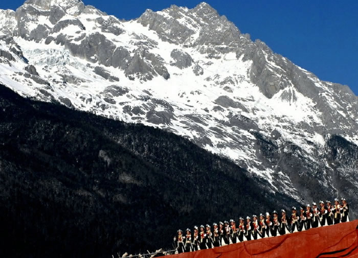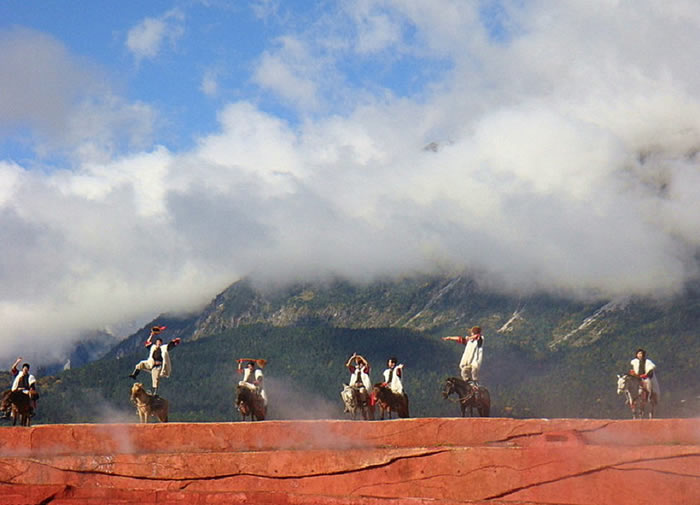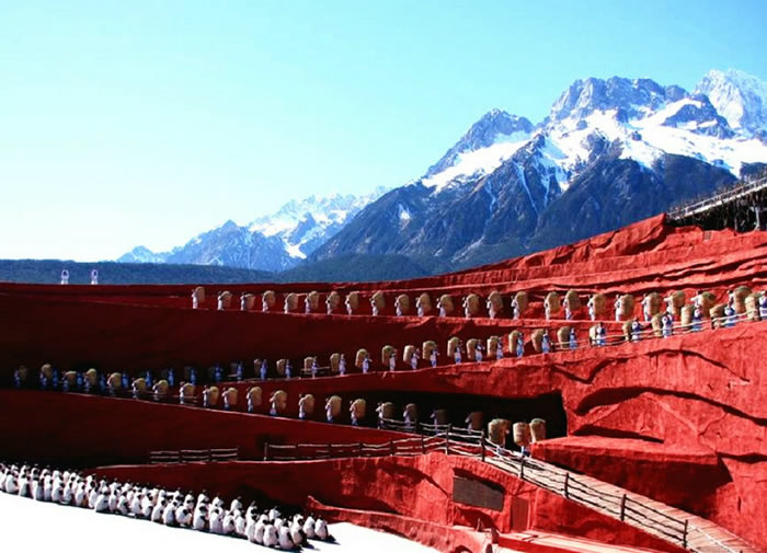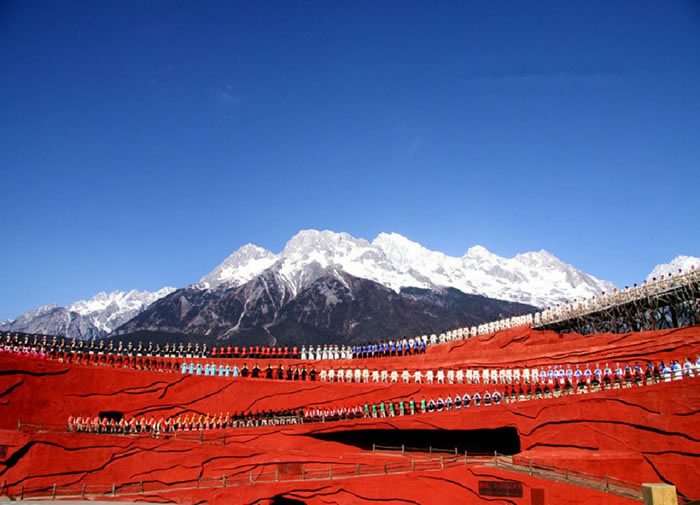 景区特色:《印象·雪山》大型实景演出克服了白天演出的诸多弊端,在经过近百次的修改之后,终于将白天的劣势转为优势,让每一个身临其境的观者都能无比真实地感受到一种从未体验过的情感。 《印象·丽江》总投资达2.5亿元,上篇为“雪山印象”,下篇为“古城印象”,主创人员由《印象·刘三姐》的原班人马组成。《印象·雪山》以雪山为背景,汲天地之灵气,取自然之大成,以民俗文化为载体,用大手笔的写意,在海拔3100米的世界上最高的演出场地,让生命的真实与震撼,如此贴近每一个人。来自10个少数民族的铿锵汉子,来自16个乡下村庄的普通农民,500多个有着黝黑皮肤的非专业演员,用他们最原生的动作,用他们最质朴的歌声,用他们最滚烫的汗水,与天地共舞,与自然同声,带给你心灵的绝对震撼。《印象·雪山》大型实景演出克服了白天演出的诸多弊端,在经过近百次的修改之后,终于将白天的劣势转为优势,让每一个身临其境的观者都能无比真实地感受到一种从未体验过的情感。演出全长1个小时,启用了最先进的造水工程和烟雾效果工程,与自然交相辉映,营造出令人赞叹的视觉效果。