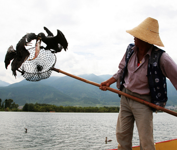 1995年大理鱼鹰应邀前往日本,参加世界鱼鹰捕鱼技能大赛,凭借高超的捕鱼技艺,与人亲密和谐的心灵沟通,征服了在场所有的评委及观众,最终荣获世界鱼鹰捕鱼技巧金奖,满载殊荣而归。随后,便有一些国家频频邀请洱海渔民出访表演!
