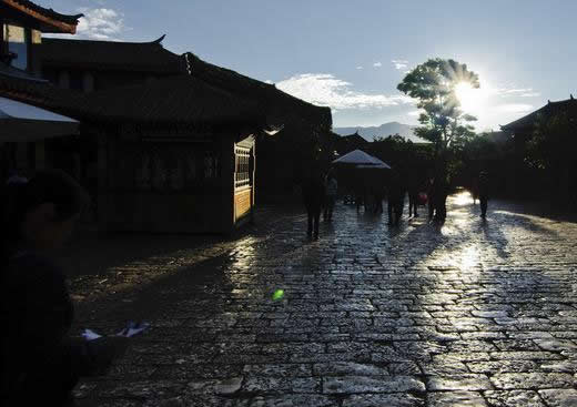 进入束河村,你可直抵束河中心集市,在这里你会有一种似曾相识的感觉,这是一个类似大研镇古城四方街的广场,面积约250平方米,亦称束河四方街,赶集的日子里异常热闹,曾是丽江皮毛交易集散之地。广场四周均为店铺,古老的木板门面,暗