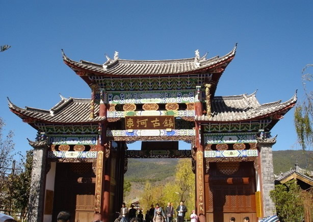 束河,纳西语称“绍坞”,因村后聚宝山形如堆垒之高峰,以山名村,流传变异而成,意为“高峰之下的村寨”,是纳西先民在丽江坝子中最早的聚居地之一,是茶马古道上保存完好的重要集镇,也是纳西先民从农耕文明向商业文明过渡的活标本,是对外开放和马帮活动形成的集镇建设典范。束河是世界文化遗产丽江古城的重要组成部分,于2005年入选CCTV“中国魅力名镇”。