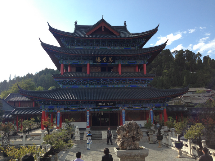 “北有故宫,南有木府”。跨过清泉汩汩的流水小桥,突见一座木牌坊赫然立于土木瓦顶居民之间。跨进朱红色的木府大门,眼前豁然开朗,一片开阔的地面上巍然耸立一座金辉煌的宫殿,汉白玉基座雕刻精美,那恢宏的气势,使人恍若置身于皇宫之内。如果说在丽江古城我们看到的是丽江世俗生活的一面的话,那么在木府,我们将翻阅到一个在西南地区曾经辉煌一时的大土司家族的兴衰史。