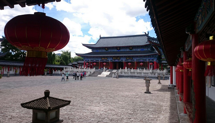 丽江木府位于丽江古城,是丽江木氏土司当年在丽江的宫殿,纳西民族首领木氏自元(1253) 世袭丽江土知府以来,历经元明清三代22世470年,所以木府是丽江地区政治、文化中心,2013年是国家AAAA级风景区。讲述丽江木氏土司风云故事的电视剧《木府风云》就是在这里拍摄的。碧辉煌的宫殿,汉白玉基座雕刻精美,那恢宏的气势,使人恍若置身于皇宫之内。如果说在丽江古城我们看到的是丽江世俗生活的一面的话,那么在木府,我们将翻阅到一个在西南地区曾经辉煌一时的大土司家族的兴衰史。