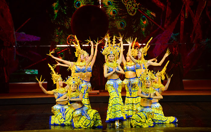 大型歌舞《丽江千古情》是丽江文化的魂,用IMAX3D的大片视觉,重现《纳西创世纪》、《泸沽女儿国》、《马帮传奇》、《木府辉煌》、《玉龙第三国》等丽江长达千年的历史与传说,引领观众穿越雪山, 在旷远原始的洪荒之域、在泸沽湖畔的摩梭花楼、在挟风裹雨的茶马古道、在金碧辉煌的木府、在浪漫凄情的玉龙第三国、在世外桃源般的香巴拉相约一场风花雪月的邂逅,感受一个美丽的夜晚。