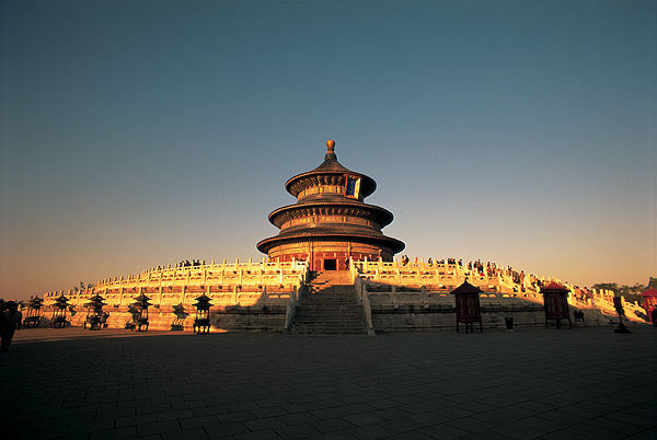 | 天坛,在北京市南部,东城区永定门内大街东侧。占地约273万平方米。天坛始建于明永乐十八年(1420年),清乾隆、光绪时曾重修 |